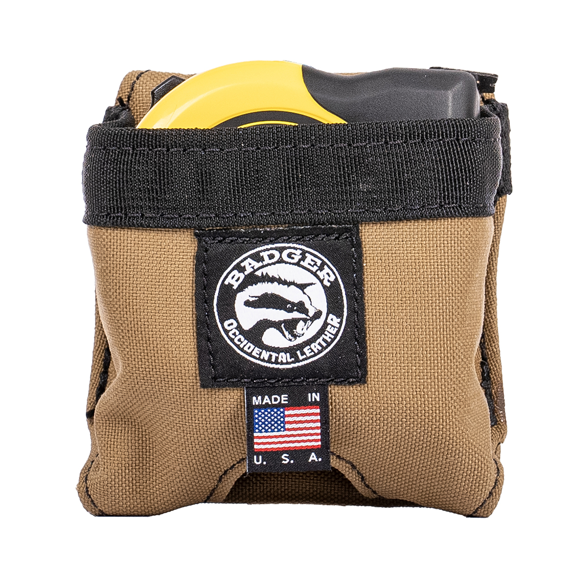 Whether on your pants belt or tool belt, the Badger clip-on tape pouch will securely hold your tape at the ready. Our tape pouch fits most tapes up to 25’-30’ without the clip. An easy-out center hole to allows quick access to this critical construction tool.